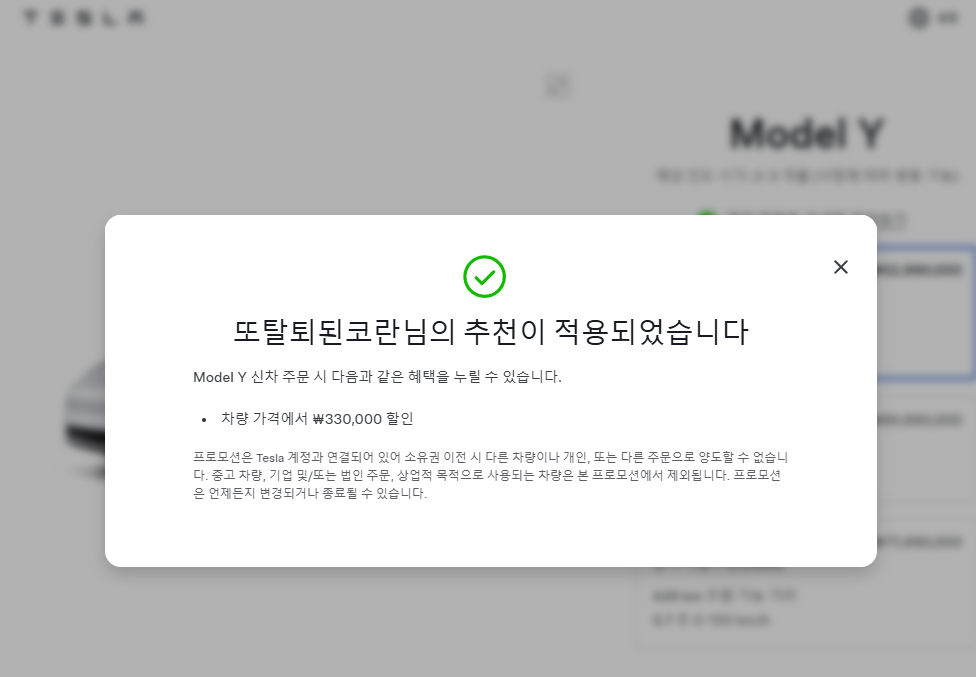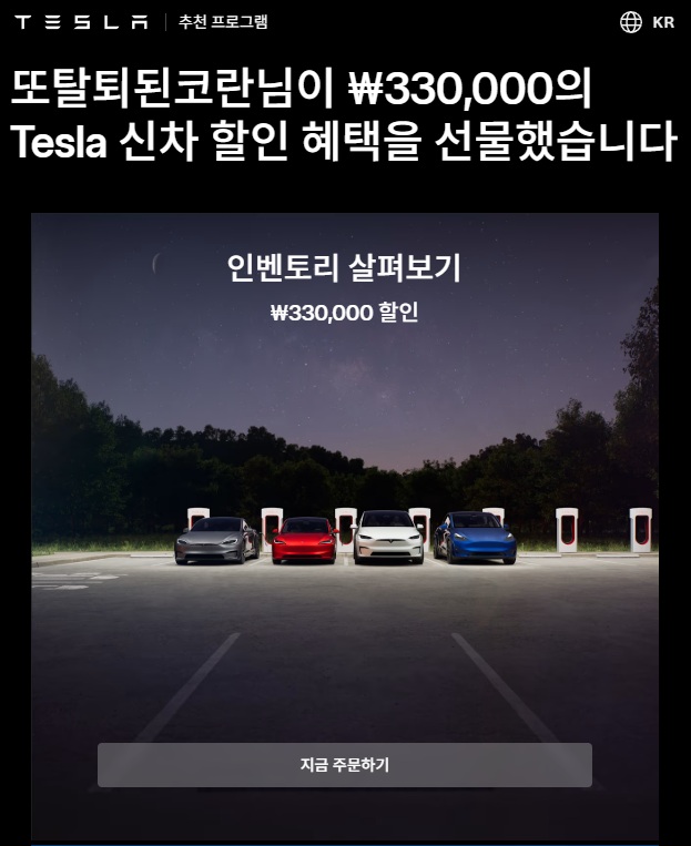 또탈퇴된코란 님의 추천을 통해 Tesla 제품 주문하기